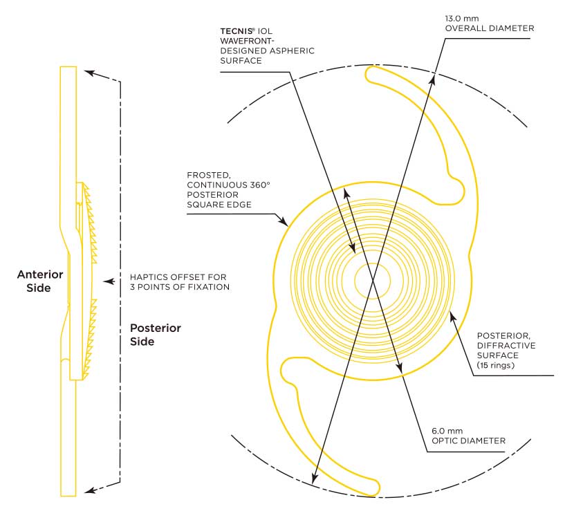 테크니스 시너지는 스마트폰 등 디지털 기기 사용시 근거리 시력을 개선하는 인공수정체로 기존 다초점 렌즈와는 달리, 확장된 초점심도(Extended Depth of Focus) 기술을 사용하여 약 33cm에서 가장 선명한 시력을 제공합니다. 이외에도 보라색광, 자외선 등의 단파장 빛 차단 기능으로 눈부심을 줄이고, 야간 시력을 개선하며, LED와 같은 현대 생활환경을 고려한 눈부심 개선 기능도 갖추고 있습니다